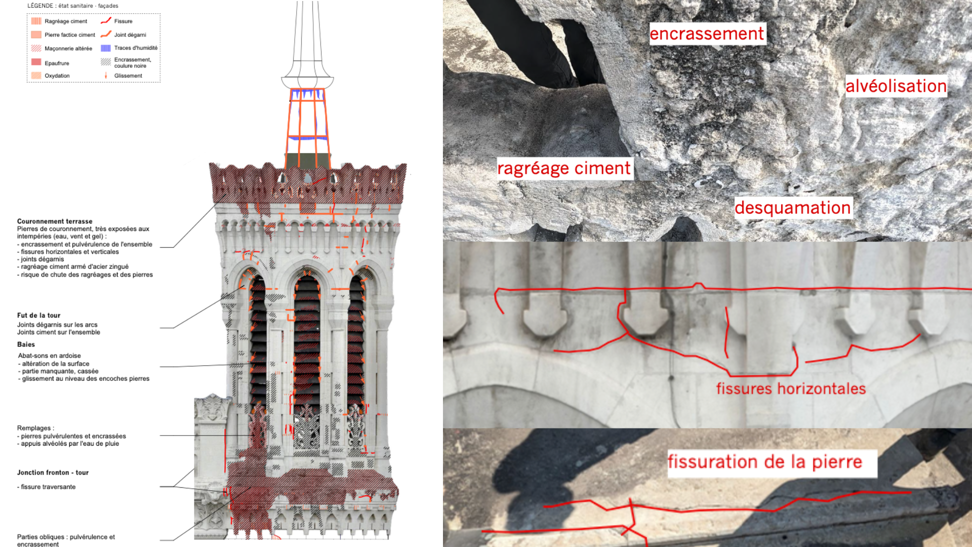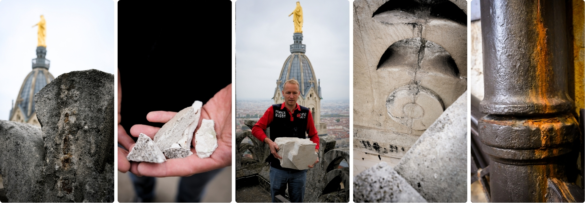 Les tours de la basilique de Fourvière, fragilisées par le temps et les intempéries, menacent de s'effondrer.
